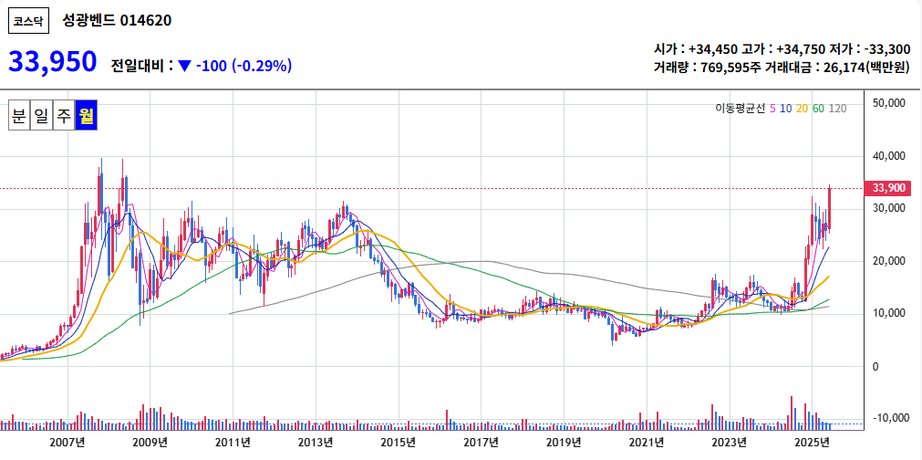 📊 성광벤드 월봉 차트 분석 (2025년 6월 기준)