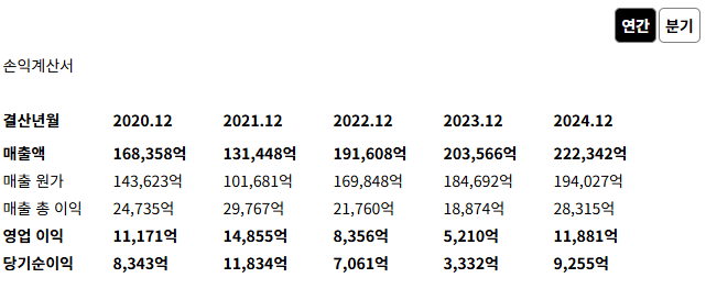 - 영업수익 및 이익 성장률: 과거부터 높은 성장률을 기록해왔으며, 최근에는 단순히 국내 시장을 넘어 해외 사업의 확대를 통한 성장이 두드러지고 있습니다. 특히 북미, 유럽, 아시아 등 주요 해외 거점에서 발생되는 수익이 점진적으로 전체 실적에 기여하는 비중이 커지고 있습니다.